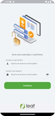 Importante: Para utilizar o aplicativo, é necessário possuir uma conta ativa no Leaf Admin.