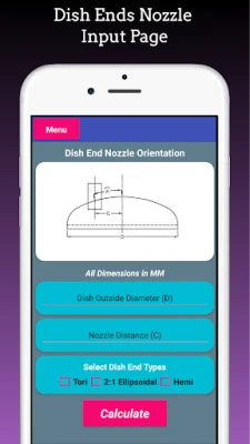 This app is Calculate Nozzle marking Distance for following Types of Dish ends or Heads